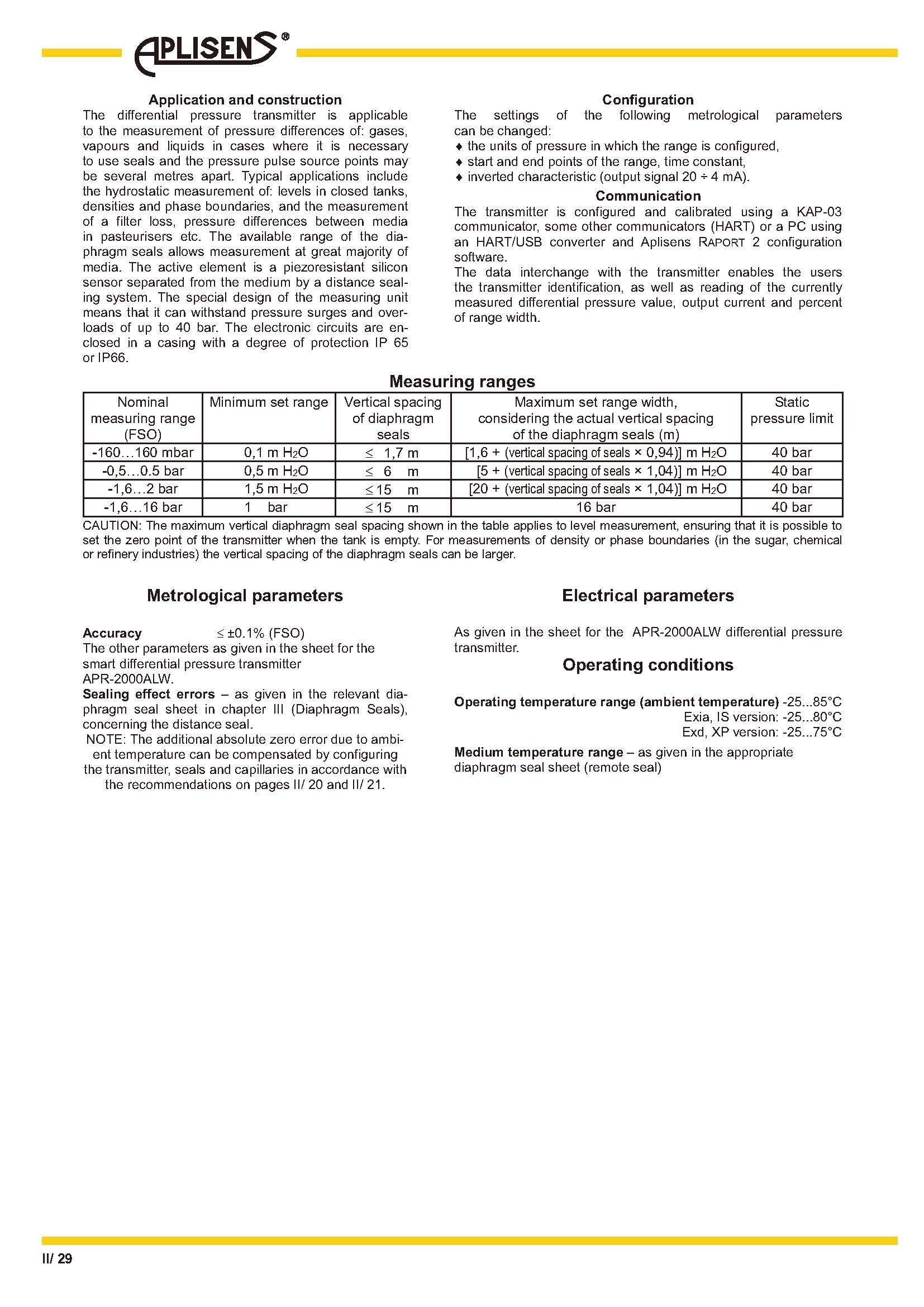 4...20 mA 輸出信號 + HART 5 / HART 7 協(xié)議